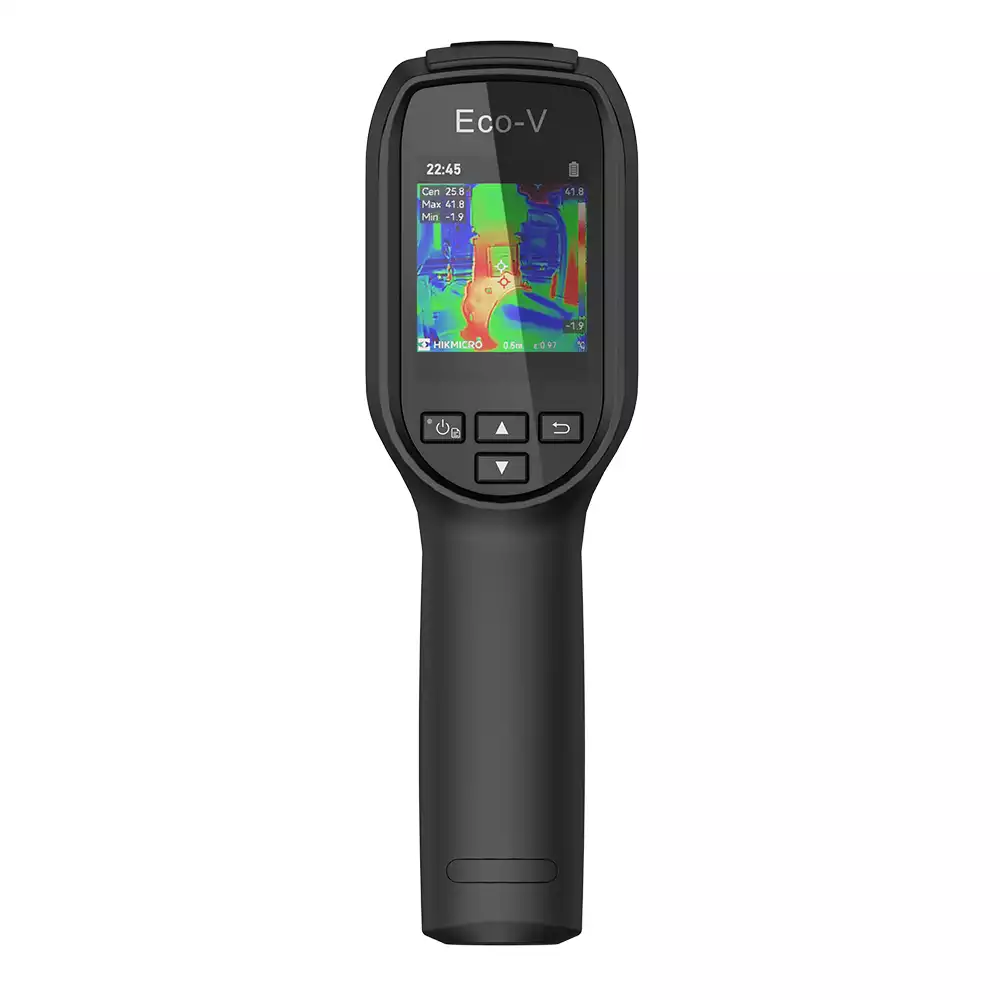 HIKMICRO Eco-V – это компактная и удобная тепловизионная камера, предназначенная для быстрого и точного выявления проблем с теплопотерями, электрическими соединениями и оборудованием. Она оснащена инфракрасным детектором высокого разрешения, обеспечивающим четкое и детализированное изображение, а также визуальной камерой для наложения реального и теплового изображения.