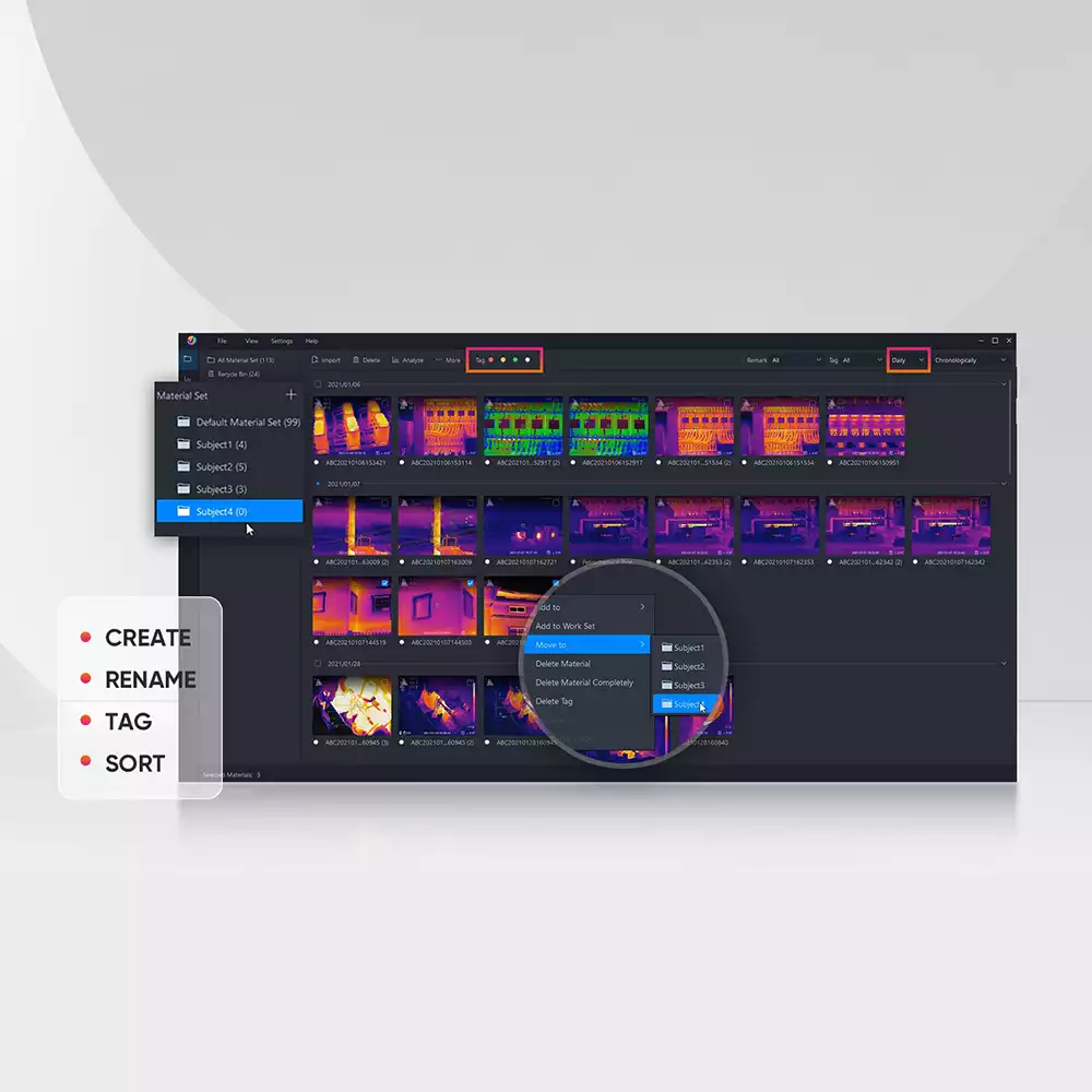 - Гибкое управление файлами: импорт, классификация, добавление тегов и организация изображений