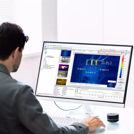 Интерфейс HIKMICRO Reporter обеспечивает удобную работу с изображениями, настройку параметров отображения, добавление комментариев и графиков. Готовые отчёты можно экспортировать в распространённые форматы, что упрощает обмен информацией и документирование результатов тепловизионного контроля.